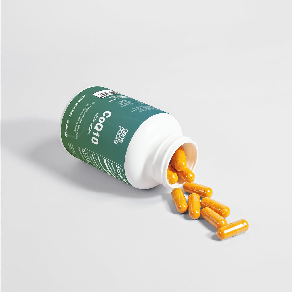 CoQ10 supplement supports mitochondrial function, helping to enhance cellular energy production for overall vitality.